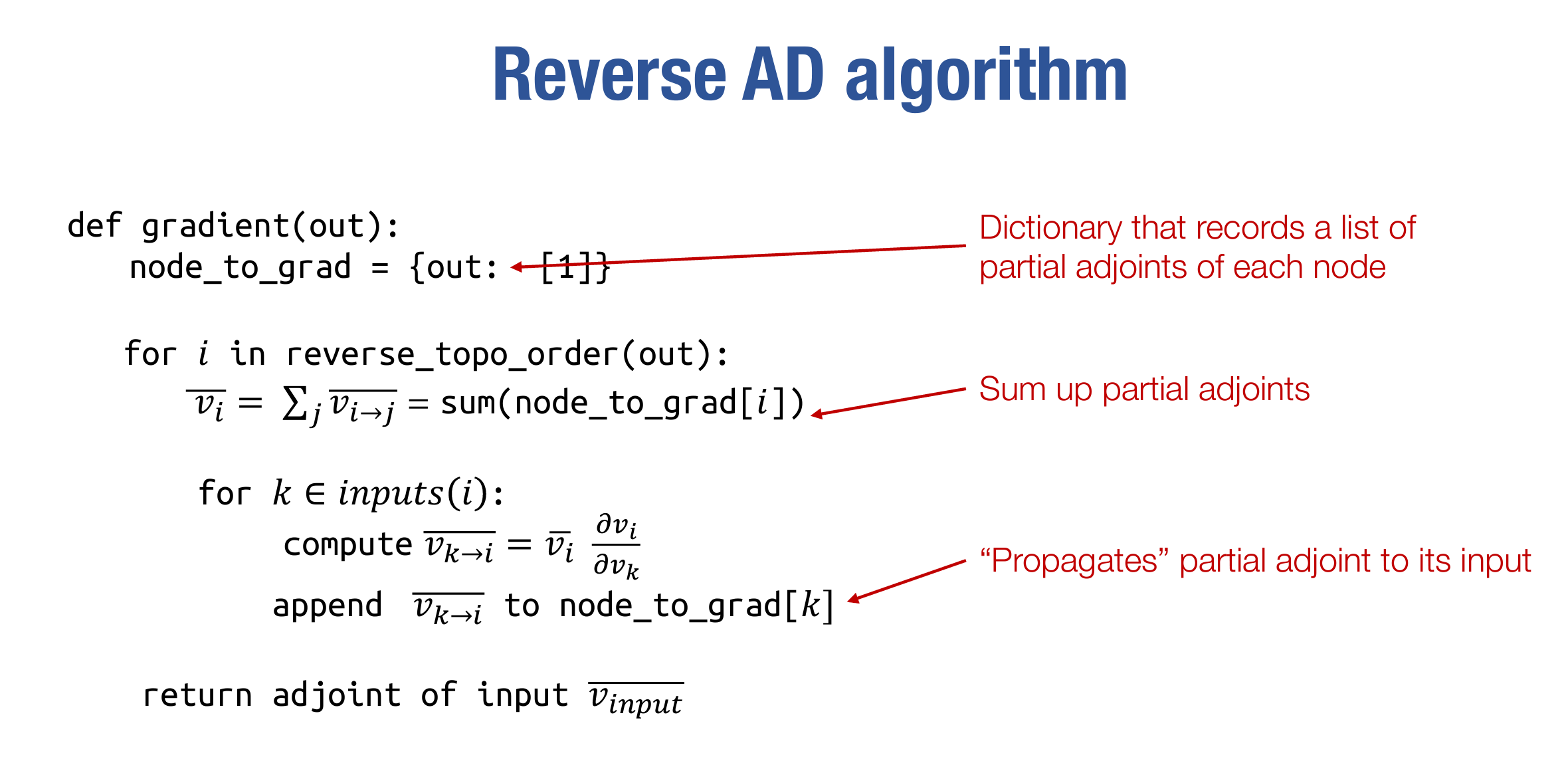 for node in reverse_topo_order: adjoint = node_to_output_grads_list[node] v_i = sum_node_list(adjoint) node.grad = v_i